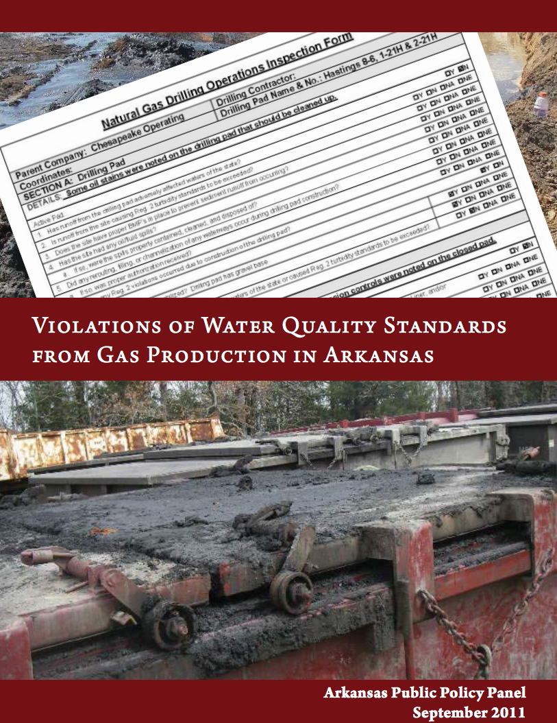 A new analysis of state inspection records from natural gas drilling and production sites in the Fayetteville Shale contains several startling revelations: The industry is responsible for widespread violations of Arkansas clean water standards; Companies are not following their own standards and best management practices in most cases; The Arkansas Department of Environmental Quality is doing little to enforce these violations or ensure corrective actions are taken to protect water supplies.